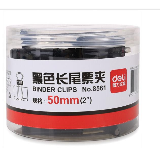 得力8561-1#黑色長尾票夾51mm筒裝(12只/筒)