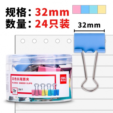 • 商品名稱:得力8553彩色長尾夾3#32mm24只